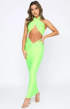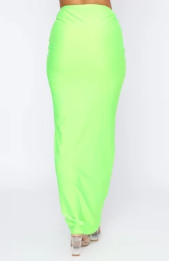 Stand out in the crowd in the Surreal Summer Maxi Skirt in Lime. This maxi skirt is high waisted with an elasticated waist, centre front ruched detail and soft silky fabric. Match with the Dream Destination Crop for the look of dreams.