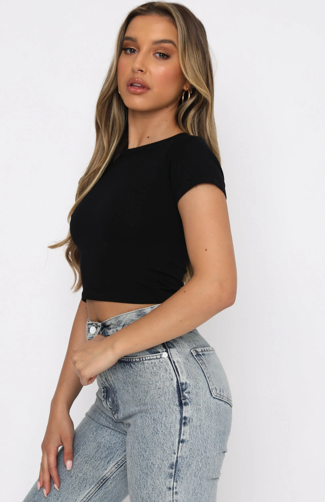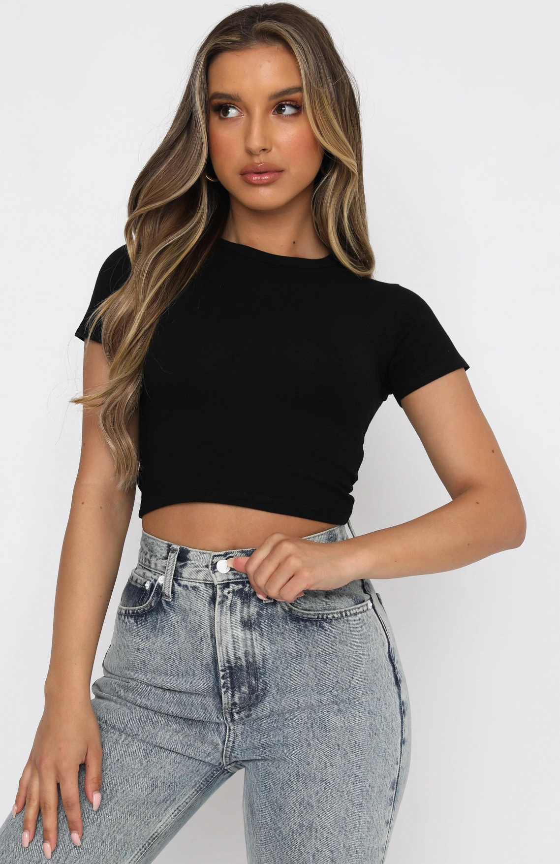 You can never have too many basic crops in your wardrobe, so why not add the Switching Sides Crop in Black to your collection. This cropped top has a high scooped neckline, shorts sleeves and soft stretch fabric. Complete the look with your favourite jeans and sneakers for a chic everyday look.