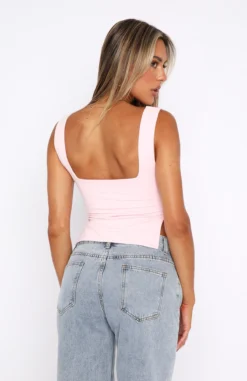 Feel stunning in our Taking Off Top in Baby Pink. Featuring thick straps, low neckline and cut-out side detail. We love this top paired with cargo pants and heels for a super chic look.Â