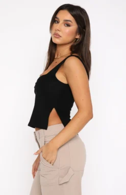 Feel stunning in our Taking Off Top in Black. Featuring thick straps, low neckline and cut-out side detail. We love this top paired with cargo pants and heels for a super chic look.