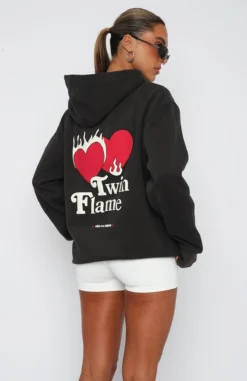 Stay comfy and cosy in the Twin Flame Oversized Hoodie in Charcoal. This hoodie is an oversized fit and features elasticated ribbed cuffs & hem, hood, soft fleeced fabric for extra comfort and a puff print logo centre front and back. We love this paired with bike shorts and sneakers for the perfect off-duty look!
