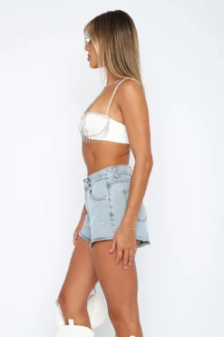 Give your denim collection a new off-duty vibe with these cute denim shorts. The “We Don’t Talk Denim Shorts” in Light Blue Wash are high waisted with button closure and zipper, 5 pocket design, frayed hem and belt loops. Just add a white tee for a classic combo that can be dressed up or down.