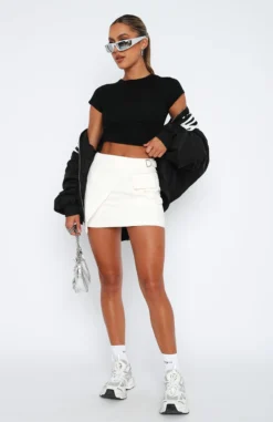 The Weekend Plans Mini Skirt in White is a weekend staple! This mini skirt is low rise and features front pocket, invisible side zipper, wrap style design and lined fabric. We love this paired with a cute crop and platform slides for a dreamy look.