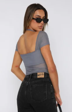 On hot summer days, the Without A Doubt Mesh Top Steel is your go-to. Featuring square neckline, lining at bust, elasticated halter neck style strap, ruched sleeves and soft, mesh fabric. Pair with your go-to White Fox Jeans and mules for a fit’ worthy of your girls night out!